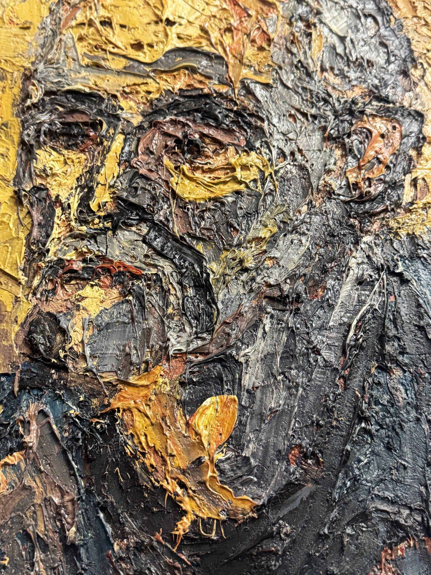 Original vintage oil on board by Barry De More, featuring a deeply expressive self-portrait rendered in thick impasto. Heavy, textured brushwork and a restrained earthy palette give the painting a raw, emotive presence with strong post-war modernist and expressionist influence. Unframed, with visible painterly surface, this striking work is ideal for collectors of figurative, mid-century, and British modern art. Arrives ready to hang.
