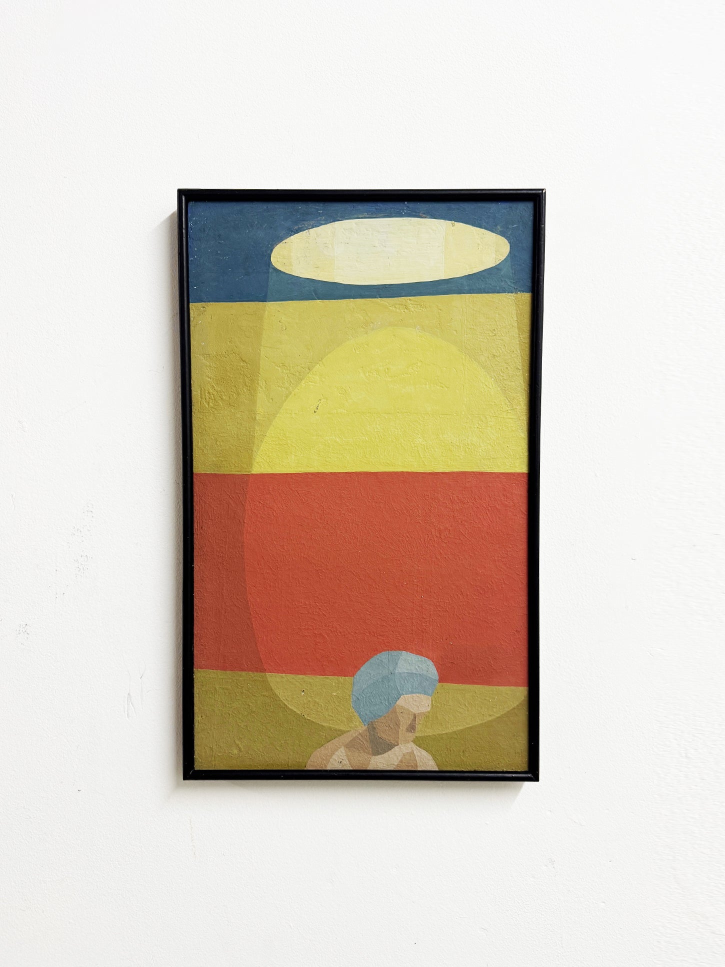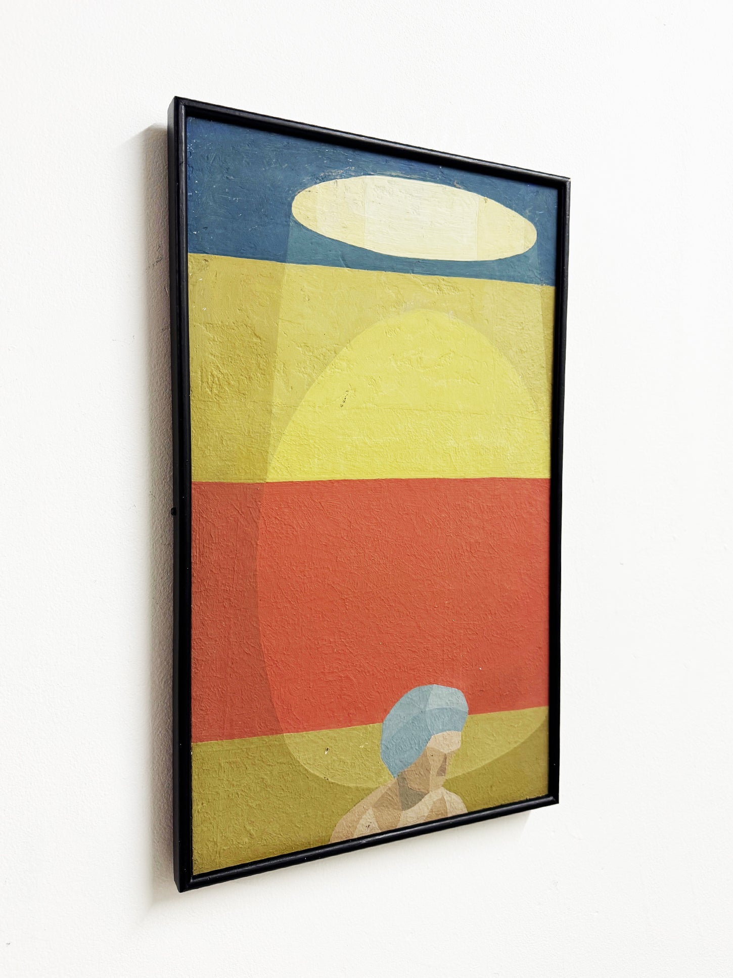 The bold colour fields, simplified cubist figurative form and restrained geometry are strongly aligned with mid-century modern aesthetics. The composition reflects the era’s focus on abstraction, symbolism and emotional restraint, while the earthy palette and textured surface are characteristic of post-war modern art.